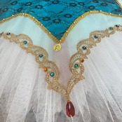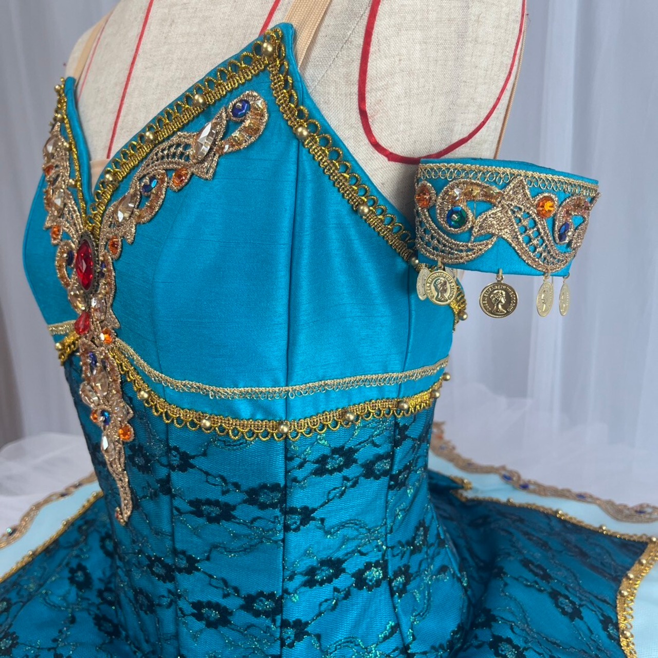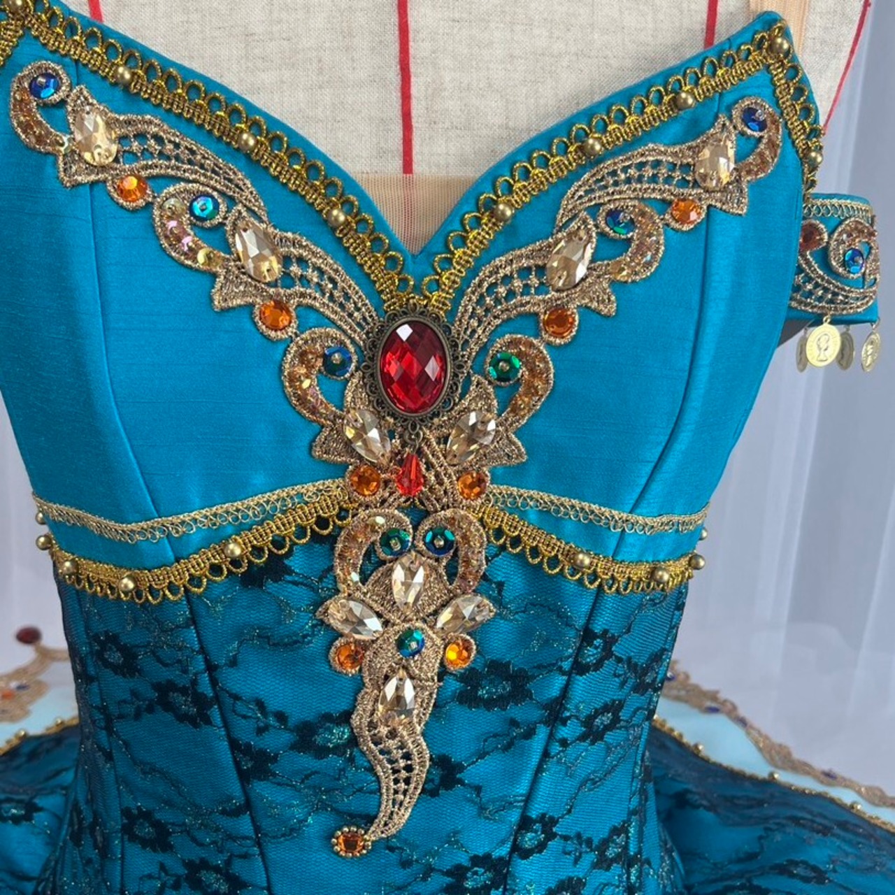 きれいなグリーンがかったブルーの衣装に